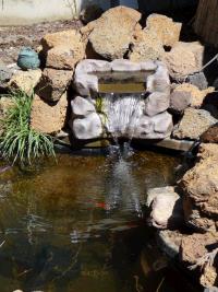 Earlier I wrote about our experience at the Art Hop last Friday. That was Day 2 of our vacation. The day before we were mostly cleaning house and doing chores. One of my chores was to fix the pond. It was losing water. The water pressure was low, so it was dribbling over the waterfall more than pouring over it.
